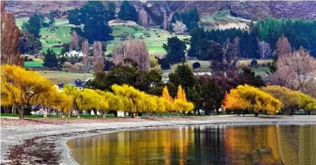 12、五月是新西兰的秋,秋树与碧水调和成了油画的色彩。