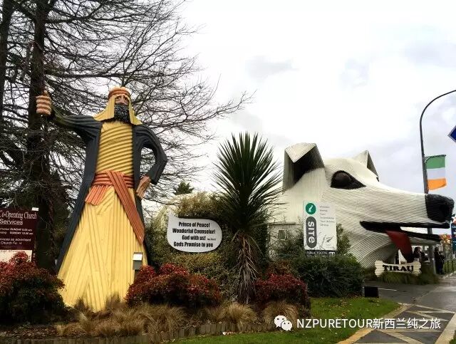 在说蒂怀霍步道之前,先来看一看距离蓝泉10分钟车程的当地小镇——蒂劳(Tirau)。中国朋友们戏称它为“狗头镇”,因为镇上最有名的就是一个大型狗头建筑,吐着舌头,十分惹眼。自吴奇隆、刘诗诗夫妇来到“狗头镇”拍摄婚纱照之后,“狗头镇”更是名声大噪。