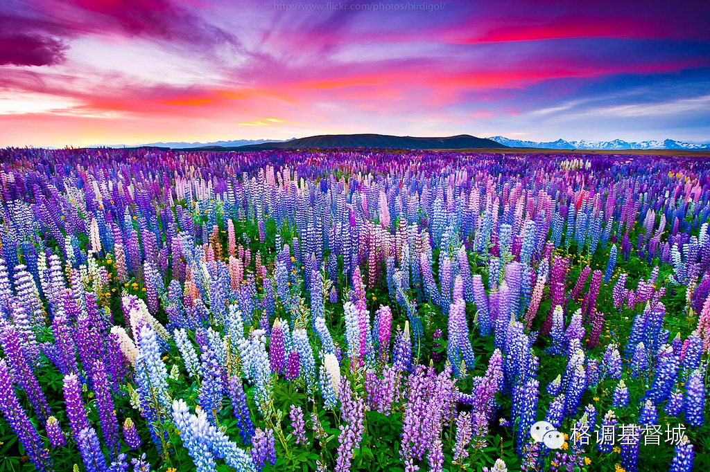 又是一年Lake Tekapo鲁冰花开的季节,那一片氤氲的紫,让人恍若非人间。或许是太主题先行,总让人想起那首儿时的歌“夜夜想起妈妈的话,闪闪的泪光,鲁冰花”。
